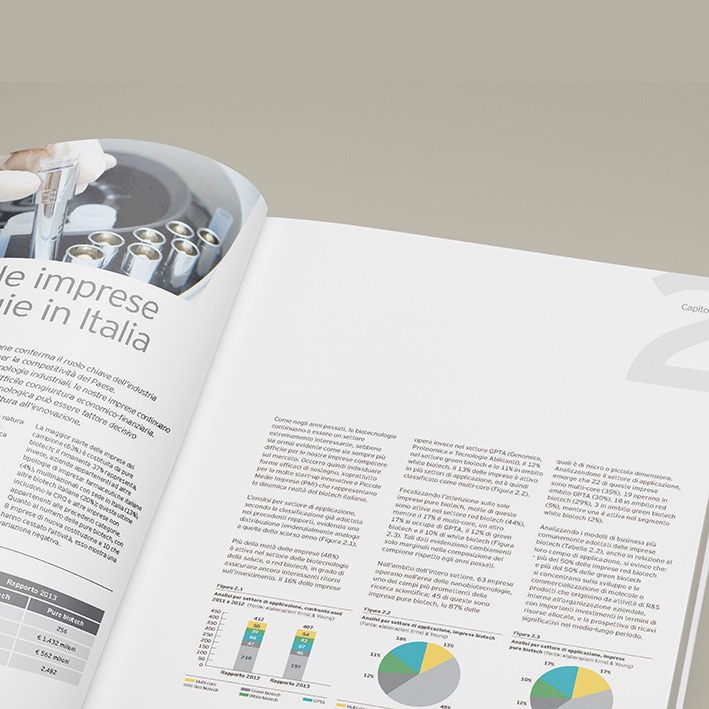 Per conto di Assobiotec (Federchimica) e ITA (Italian Trade Agency) abbiamo creato un progetto grafico per questo report annuale e, con il tramite di EY, abbiamo seguito l’iter completo dall’impaginazione fino alla stampa e alla pubblicazione on line.