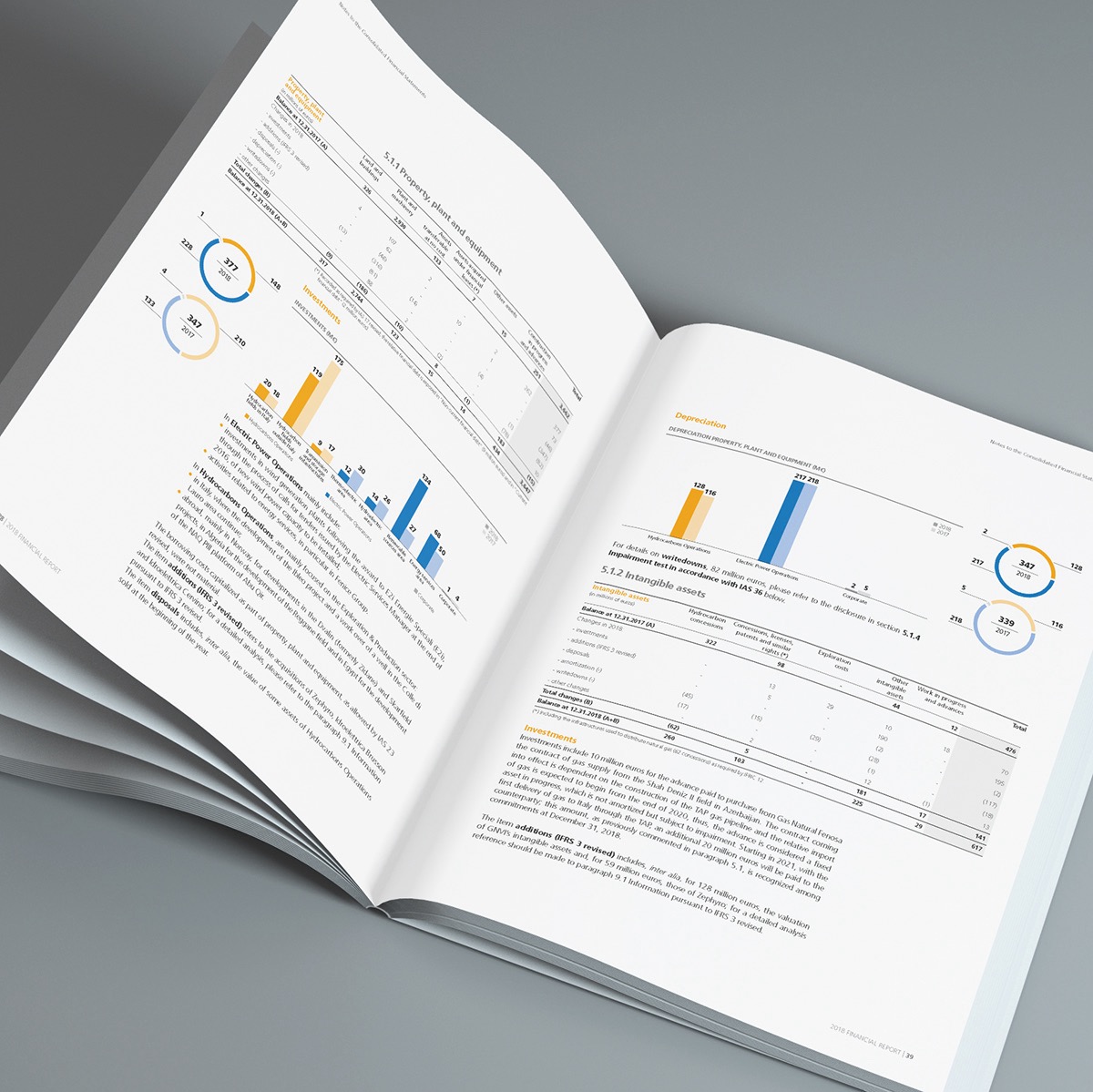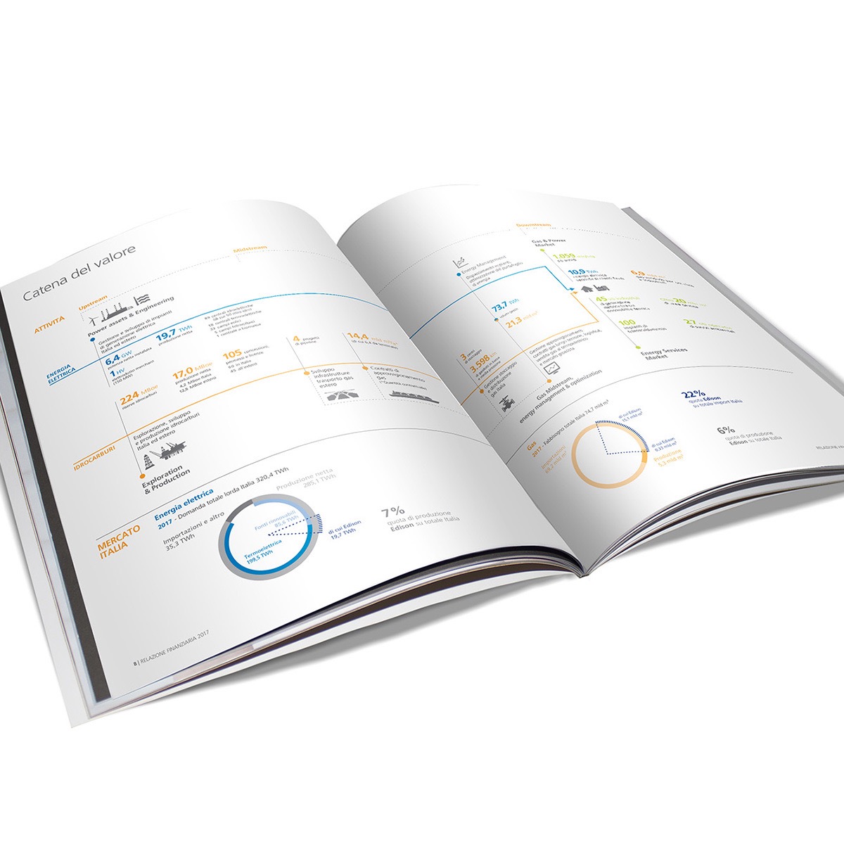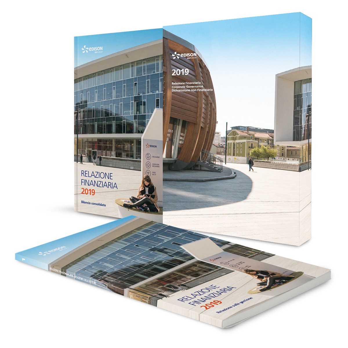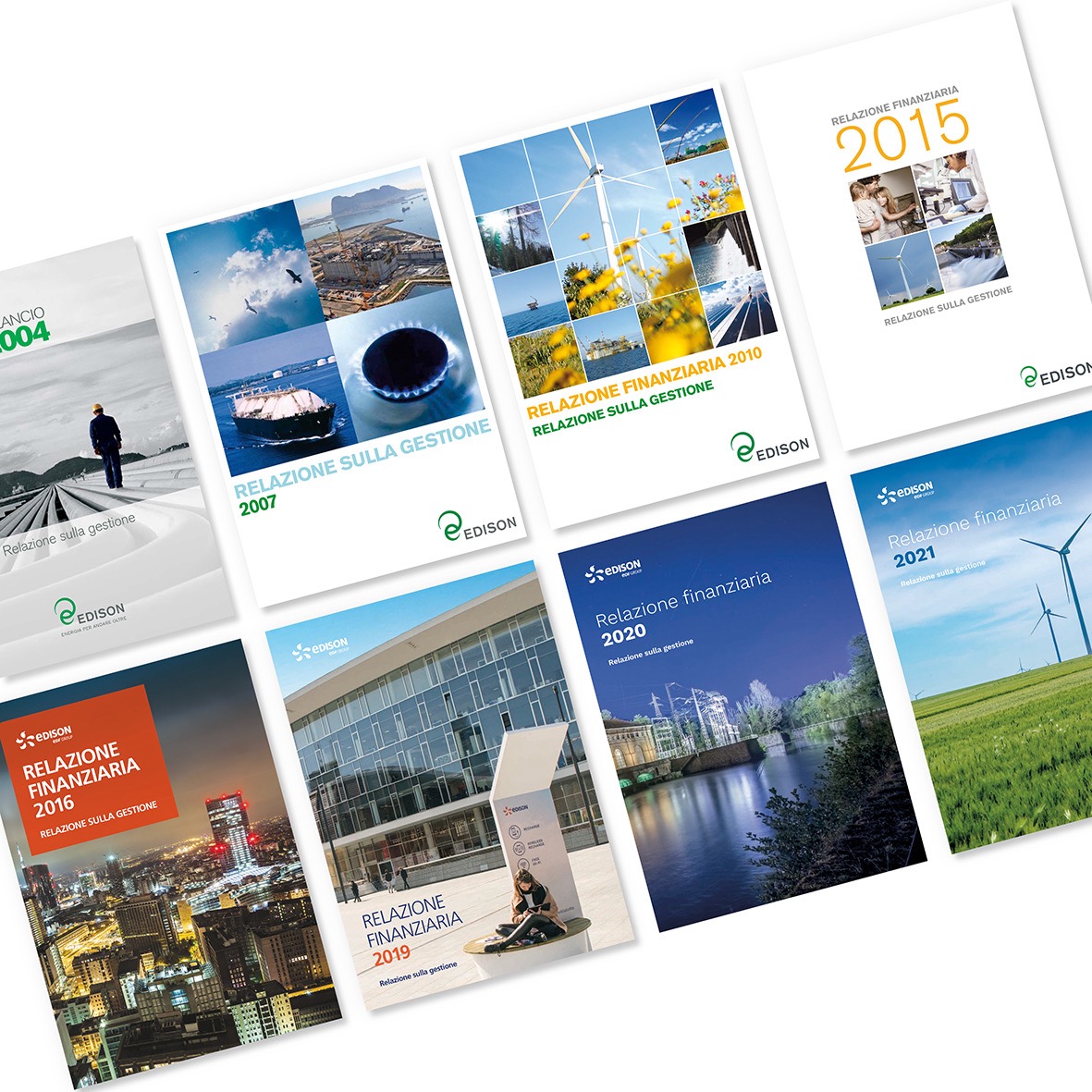 Ci occupiamo dal 2005 dell’art direction e dell’impaginazione della Relazione Finanziaria, così come del Rapporto di sostenibilità finché pubblicato separatamente. Attualmente è diventato parte del bilancio con un volume chiamato “Dichiarazione consolidata di carattere non finanziario”.